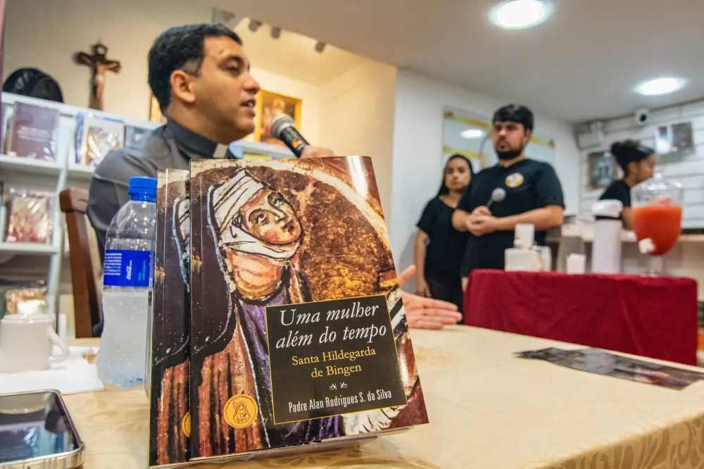 “Numa era de muita fragmentação, Hildegarda é mais do que necessária. Ela é atual. A sua mensagem é atual”, disse o padre Alan Rodrigues, pároco da Paróquia de São Sebastião do Carangola. Ele é autor do livro Santa Hildegarda de Bingen – Uma Mulher além do tempo e, no sábado (7), recebeu leitores para uma manhã de conversa e autógrafos na loja Pequena Flor, no Centro de Petrópolis.