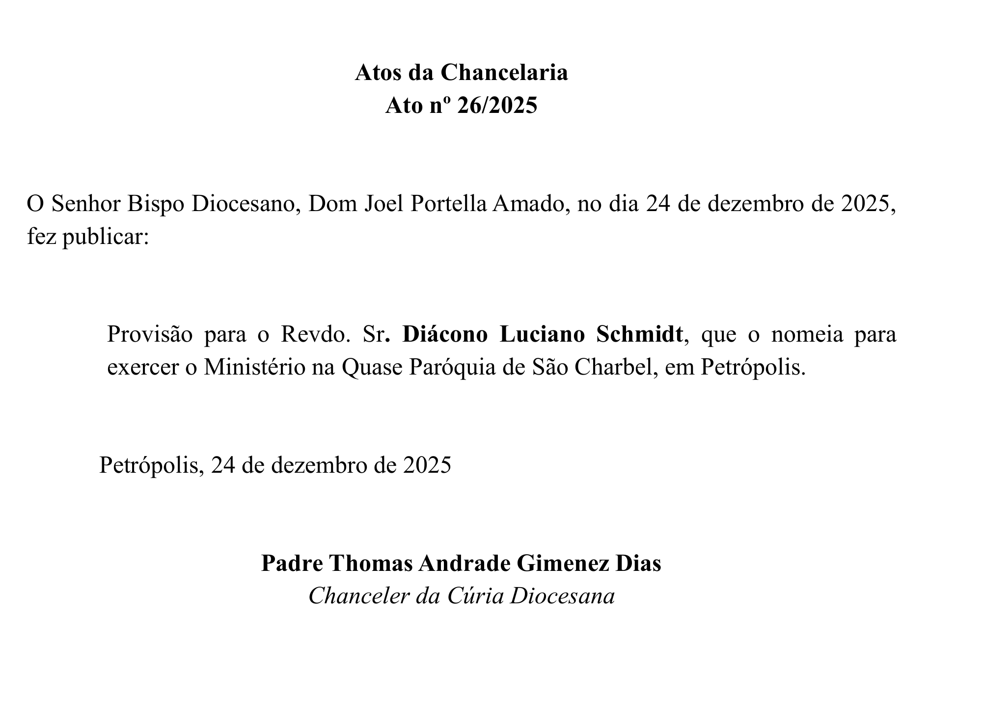 Atos da Chancelaria: Alterações no Clero