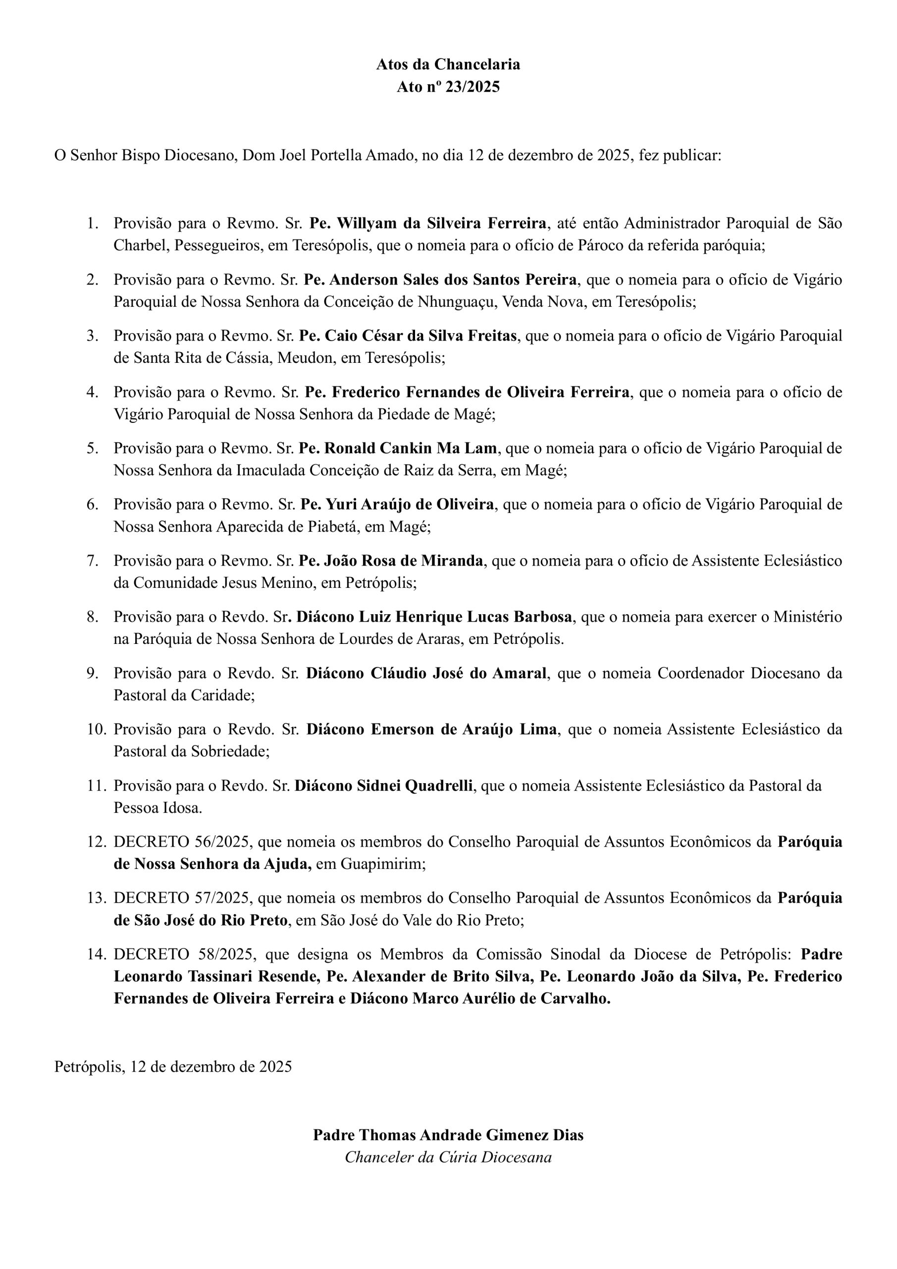 Atos da Chancelaria: Nomeações no Clero e Decretos