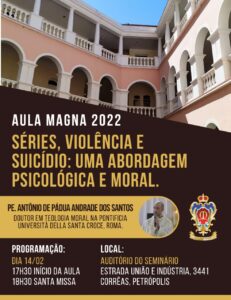 Com o retorno dos seminaristas ao Seminário Diocesano Nossa Senhora do Amor Divino e a entrada dos novos alunos. No dia 14 de fevereiro, acontece no Seminário a Aula Magna, que terá como tema “Série, Violência e Suicídio: uma abordagem psicológica e moral”. A aula será apresentada pelo Doutor em Teologia Moral pela Pontificia Università Della Santa Croce, em Roma, Padre Antônio de Pádua Andrade dos Santos.