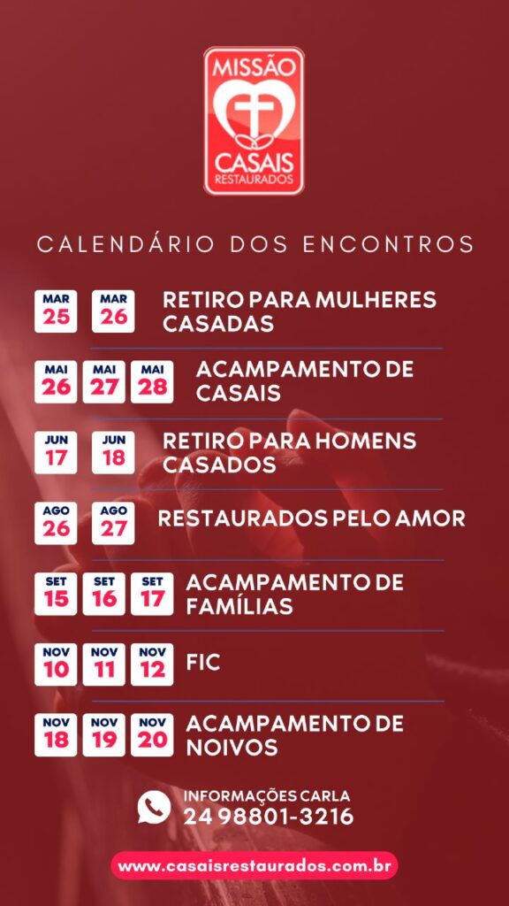 Missão Casais Restaurados divulga calendário anual dos encontros e retiros