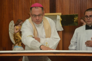 “O altar e a casa” Neste momento o bispo derrama o óleo do Crisma no meio do altar.