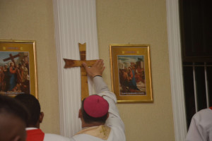 Depois disso unge as paredes da igreja, marcando as cruzes dispostas nas paredes com o sinal da cruz.