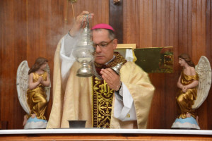 O bispo coloca incenso no fogareiro e benze-o; ou com uma pequena vela acende o incenso.