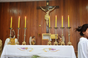 Depois de terminado a incensação, limpa-se o altar e estende-se sobre ele a toalha. Adorna-se o altar com flores e depõe-se sobre ele os castiçais e o crucifixo.