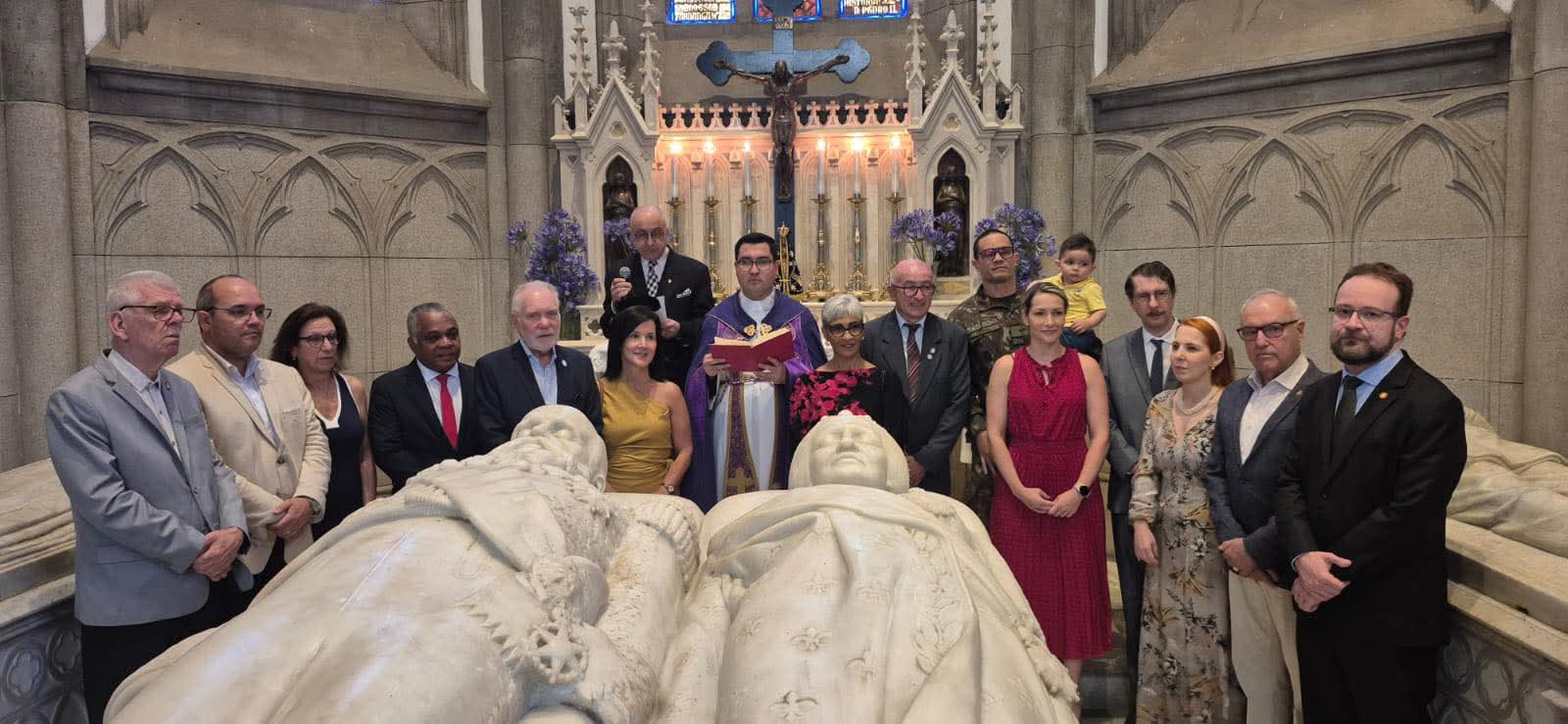 Ao final da celebração, o sacerdote pediu orações pela alma de Dom Pedro II, destacando sua fé católica e o desejo de alcançar a coroa imarcescível no céu: