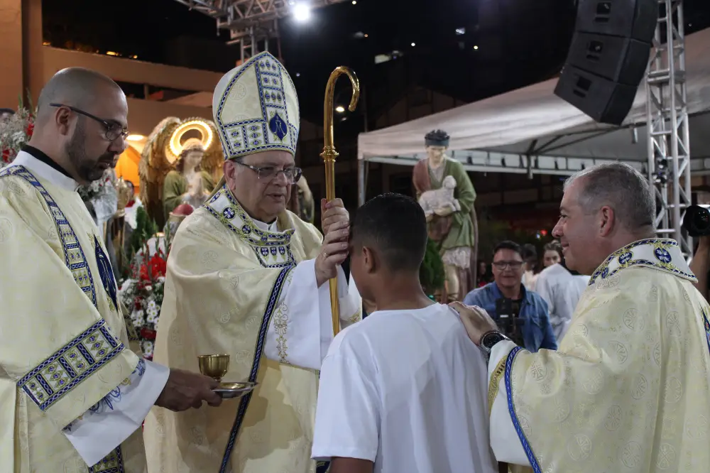 Em sua homilia, Dom Joel destacou a alegria de ver a praça transformada em igreja e santuário, e brincou com os crismandos: “Antes da Confirmação, tem o sermão”, disse, arrancando sorrisos da assembleia. Em seguida, conduziu a reflexão sobre o significado da celebração mariana do dia, afirmando que os crismandos poderiam ser chamados de “Turma Nossa Senhora da Apresentação”.