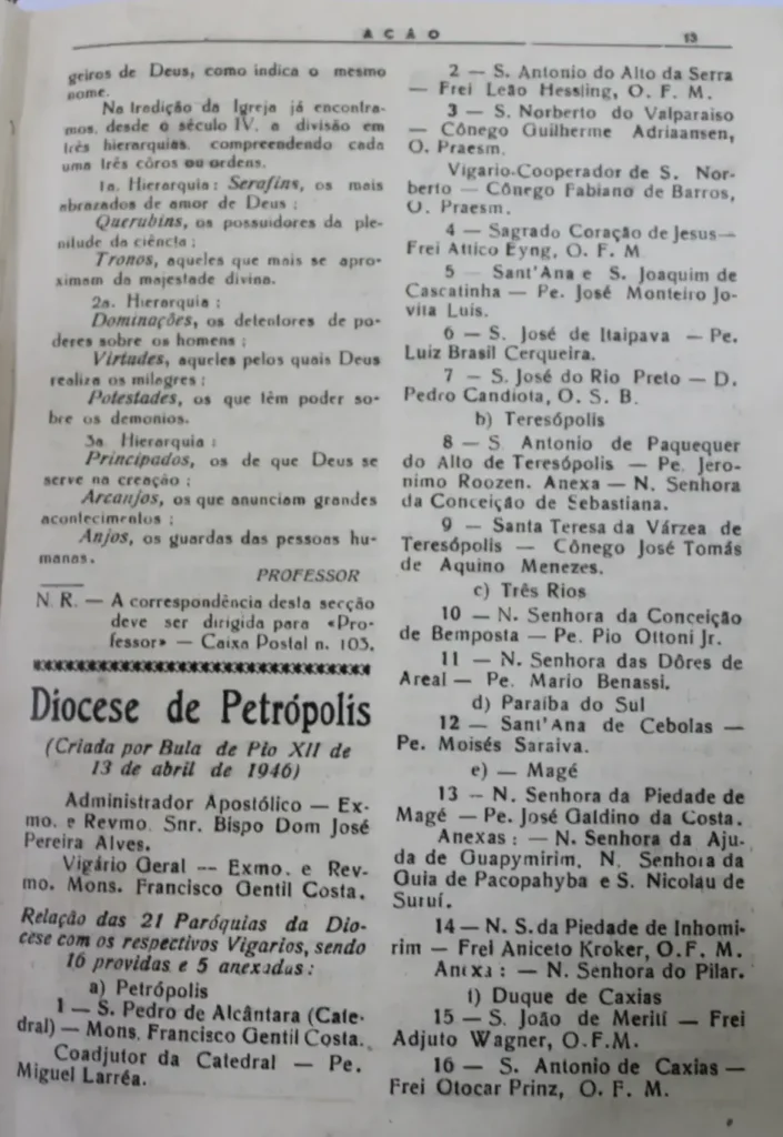O ano de 1943 constitui um marco decisivo no processo de restauração da Diocese Petropolitana. Naquele ano, por ocasião das comemorações do centenário da cidade, a Paróquia de São Pedro de Alcântara promoveu um grande Congresso Eucarístico, que contou com a presença do Núncio Apostólico no Brasil, Dom Bento Aloísio, de numerosos bispos e de diversas autoridades civis e militares.