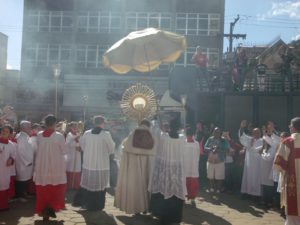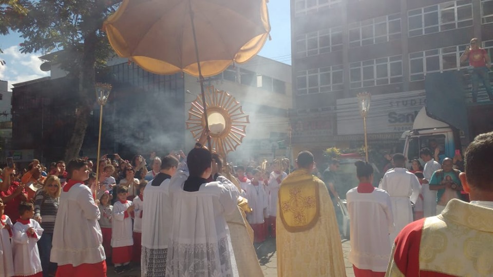 A solenidade de Corpus Christ, no Decanato Santa Teresa, este ano foi celebrada na praça da Igreja Santa Teresa com a presença de todos os padres do decanato. A tarde, todas as paróquias do Decanato celebraram a missa e realizaram a procissão.