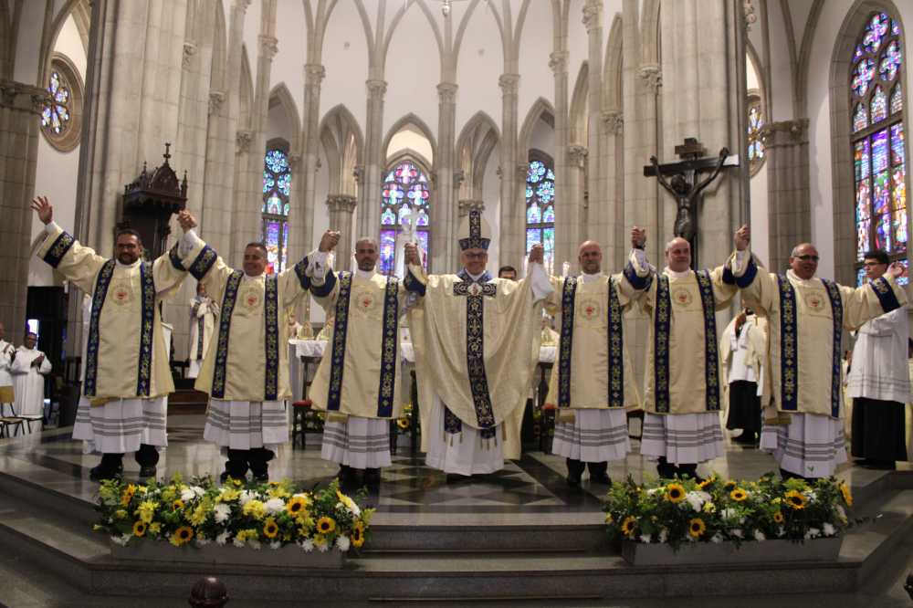 Com grande alegria, a Diocese de Petrópolis celebrou a ordenação diaconal de seis novos diáconos permanentes, no dia 17 de junho, com missa presidida pelo bispo diocesano, Dom Gregório Paixão, OSB, na Catedral São Pedro de Alcântara, em Petrópolis. Na presença de seus familiares, foram ordenados diáconos Carlos Coelho Cerqueira, Emerson de Araújo Lima, Paulo Cesar da Silva Jesus, Claudio J. Amaral (Binho), José Elias dos Santos e Walace de Souza Nascimento.