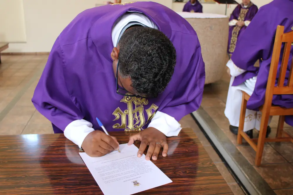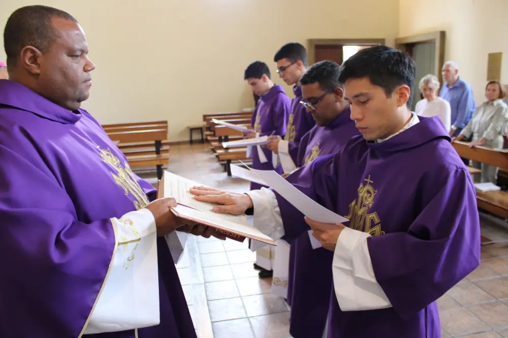 Durante a celebração, os quatro futuros sacerdotes realizaram o ato de fé e de compromisso à Igreja e ao bispo diocesano, expressando publicamente sua obediência e unidade com o pastor da Diocese de Petrópolis.