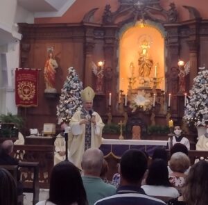 A missa foi concelebrada pelo reitor do Santuário, Padre Rodrigo Alberti, pelo reitor do Seminário Diocesano Nossa Senhora do Amor Divino, Padre Luiz Henrique Veridiano, pelo vice-reitor do Seminário, Padre José Carlos da Cruz Luna, pelo Padre Luís Garcia Mello, pároco de Nossa Senhora do Rosário, e o Padre Denis de Souza Bispo, pároco de Santo Antônio e Santo Agostinho. Estavam presentes na missa seminaristas, religiosos e membros de Comunidades de Vida.