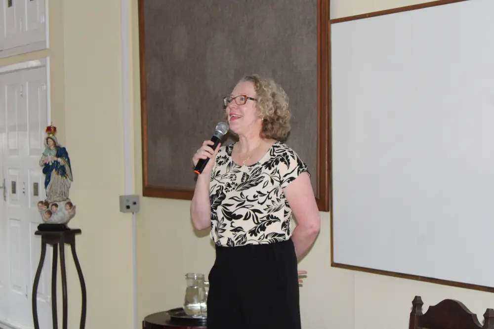 No período da tarde, Fabiana Beutler conduziu a palestra “Secretária(o) – O profissional do atendimento. Aprofundamento de um atendimento de qualidade”. A apresentação focou em aspectos cruciais como comunicação eficaz, qualidade no atendimento e os desafios inerentes à função. Foram abordados temas como etiqueta profissional (postura, comportamento, aparência pessoal), bons hábitos nas relações humanas (autenticidade, responsabilidade, pontualidade, confiabilidade, respeito, paciência, atenção, empatia) e a importância da ética (discrição, lealdade) no ambiente paroquial.