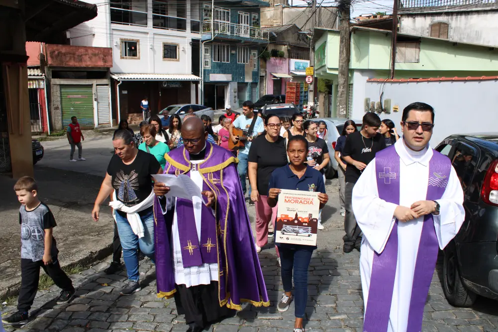 A Diocese de Petrópolis realizou, no dia 21, a caminhada penitencial da Campanha da Fraternidade, com o tema “Fraternidade e Moradia”, na Paróquia São Jorge, no Alto Independência. O bispo diocesano, Dom Joel Portella Amado, presidiu a missa de encerramento na Igreja Matriz, com a participação expressiva da comunidade, seminaristas e sacerdotes do Decanato São Pedro de Alcântara.