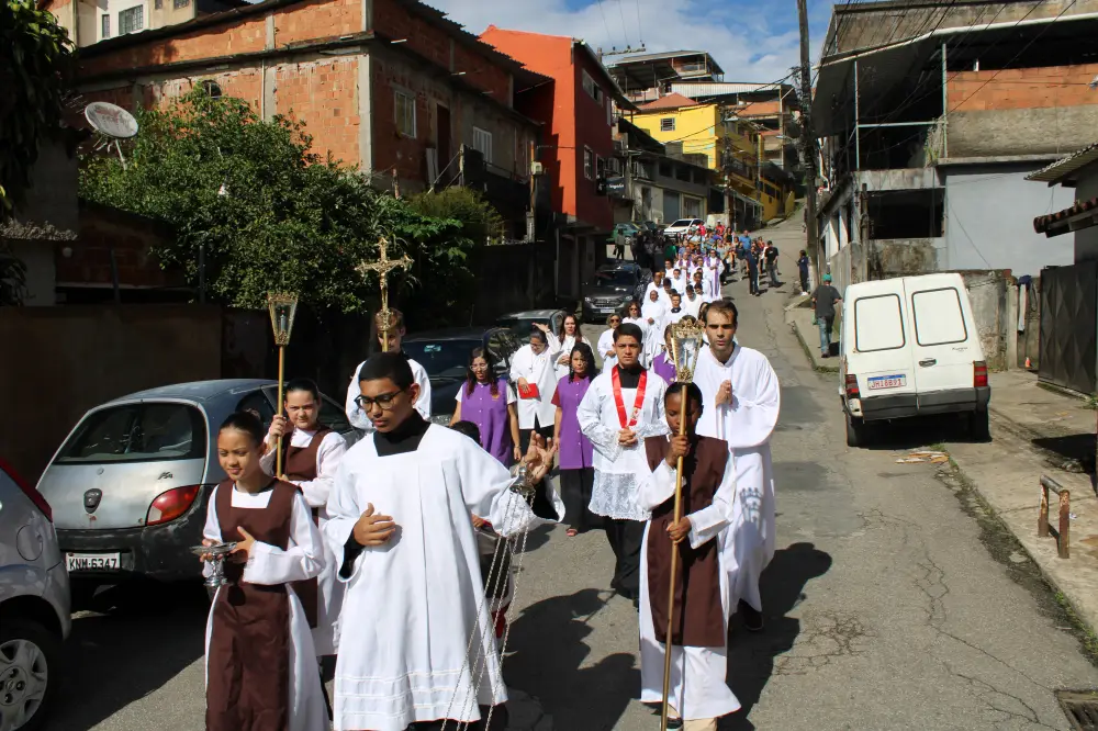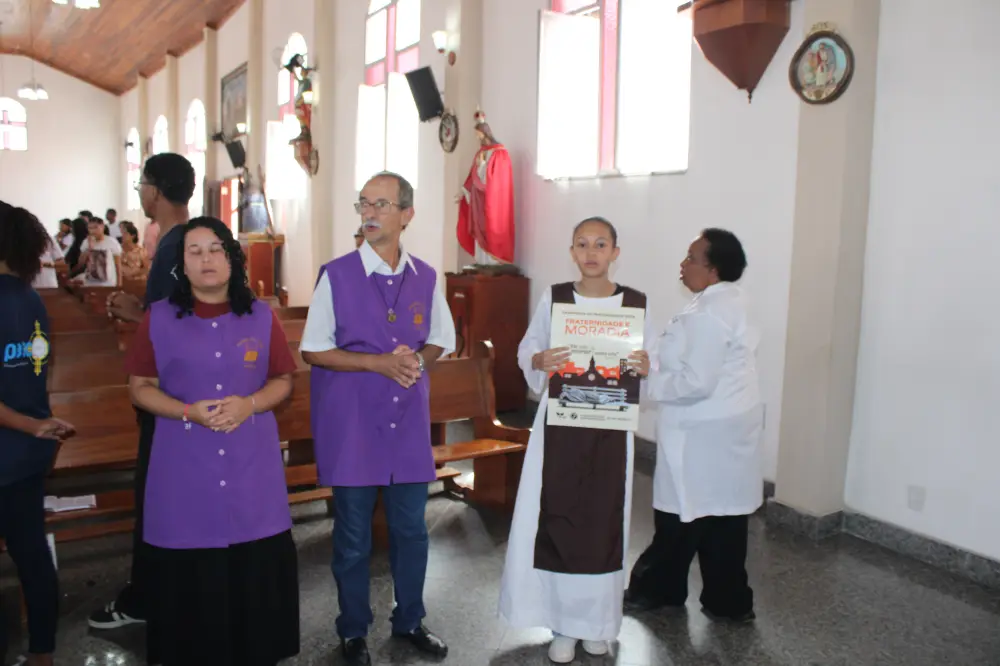 A caminhada teve início na Capela Frei Galvão e foi conduzida pelo administrador paroquial, Padre Leonardo João. Ao longo do percurso, os fiéis viveram momentos de oração e canto, além da apresentação do cartaz da Campanha da Fraternidade, que traz como lema “Ele veio morar entre nós”. Padre Leonardo agradeceu a presença dos padres, dos fiéis da paróquia e de outras comunidades que se uniram à caminhada e à celebração eucarística.