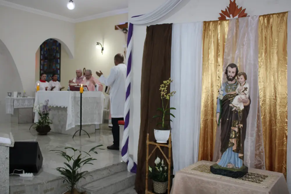 Celebrando o quinto dia da novena em preparação à festa de São José, que será celebrada em 19 de março, a comunidade da Capela São José, na Paróquia Nossa Senhora Aparecida do Quitandinha, no Amazonas, recebeu com alegria o bispo diocesano, Dom Joel Portella Amado. A missa foi presidida por Dom Joel, concelebrada pelo pároco, frei Sebastião José Ramos dos Santos, OFMCap, e assistida pelo diácono permanente Sidnei Quadrelli.