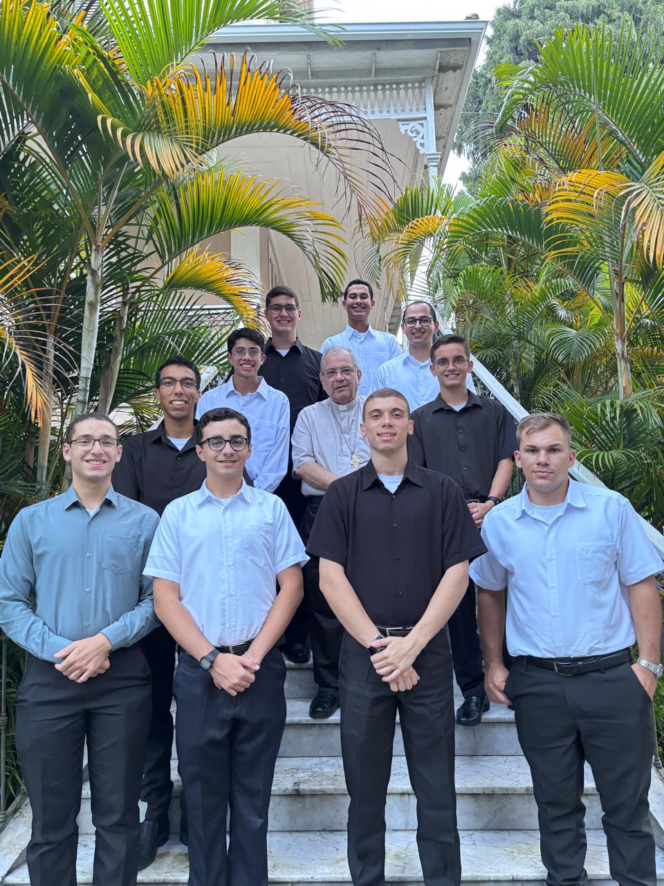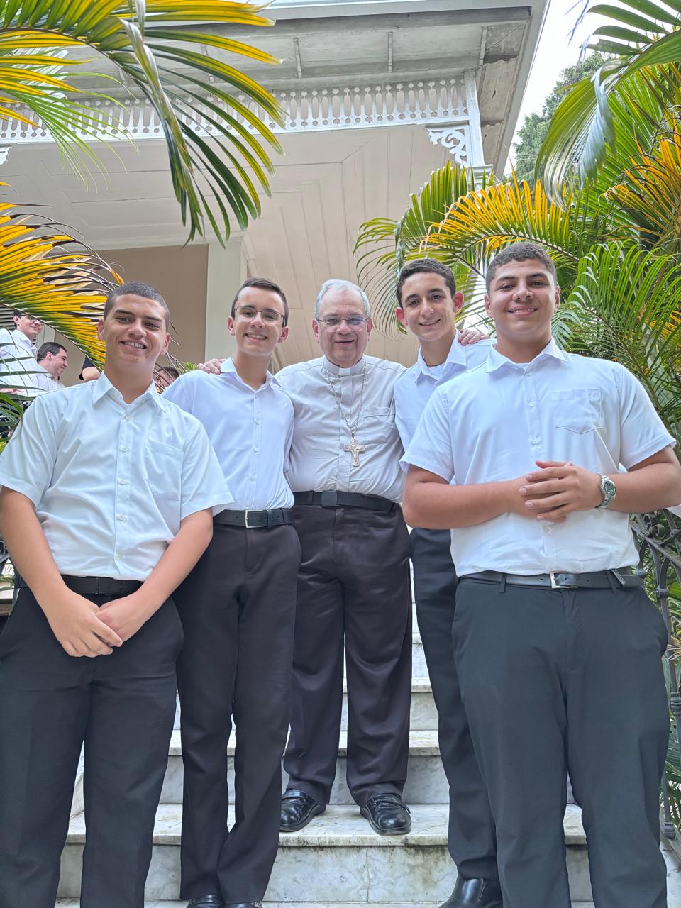 Na tarde de 17 de março, em um encontro fraterno, Dom Joel Portella Amado, bispo diocesano, recebeu, na residência episcopal, os novos seminaristas de nossa diocese. Atualmente, dez jovens estão no propedêutico e quatro no Seminário Menor.