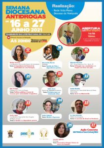 A abertura acontece no dia 16 com Dom Gregório Paixão, OSB, bispo da Diocese de Petrópolis, que vai falar sobre “A Cultura Contemporânea e a Dependência Química”. Uma prévia do que será a Semana Diocesana Antidrogas acontece no sábado, às 20h, no mesmo canal. A partir do 16 até o dia 26, o evento conta com diversas participações e no dia 27, acontece uma ação concreta na cidade, quando o grupo Rede Vida Plena vai entregar doações as comunidades terapêuticas.
