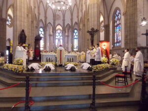 A missa, celebrada na Catedral São Pedro de Alcântara, contou com a presença do Vigário Geral da Diocese, Monsenhor José Maria Pereira, dos padres formadores do Seminário Diocesano Nossa Senhora do Amor Divino e vários sacerdotes da Diocese de Petrópolis e da Arquidiocese do Rio de Janeiro, assim como diáconos permanentes, amigos e familiares dos novos diáconos. Ao final da missa, os diáconos ordenados homenageiam Padre Francisco Montemezzo que se encontra internado devido a problemas de saúde.