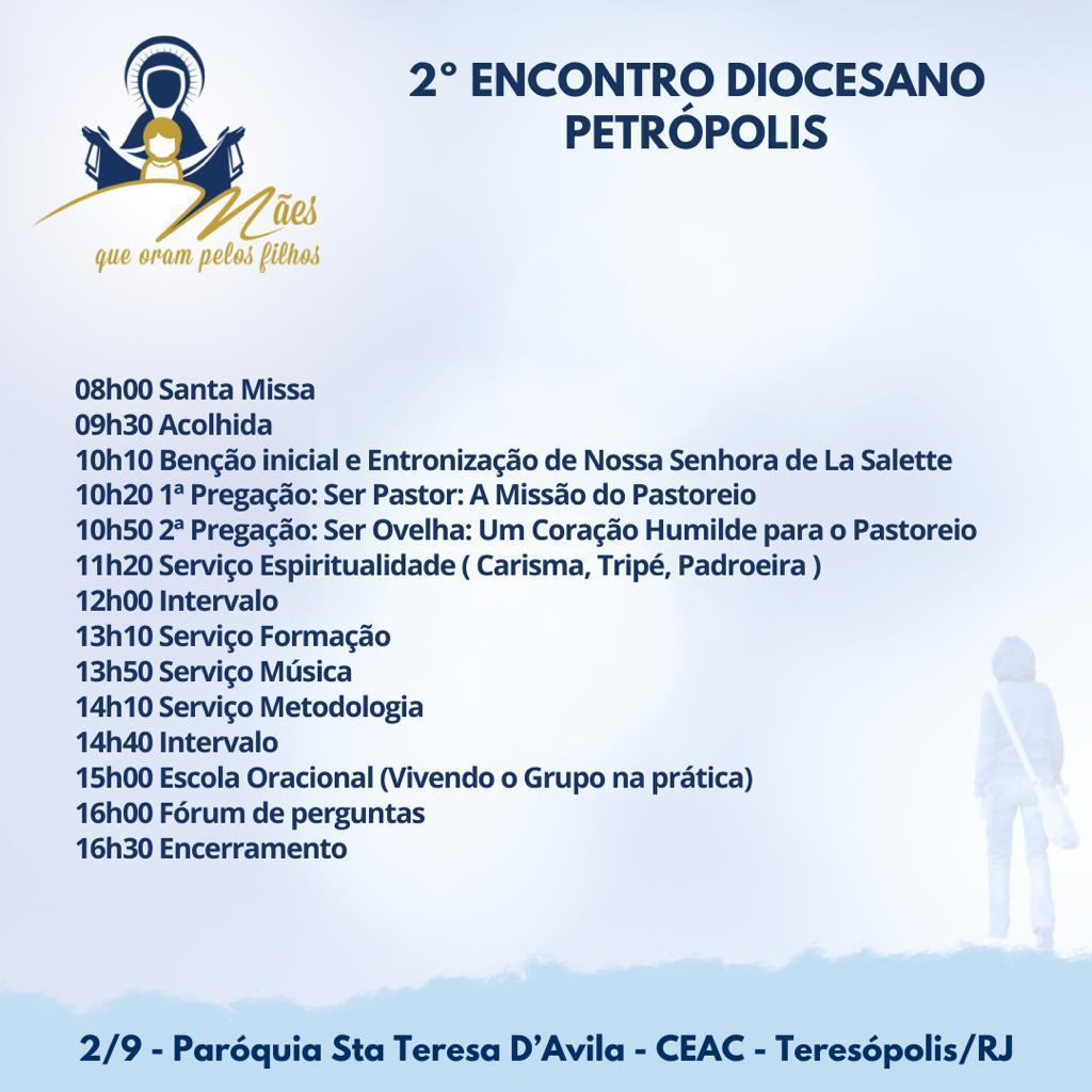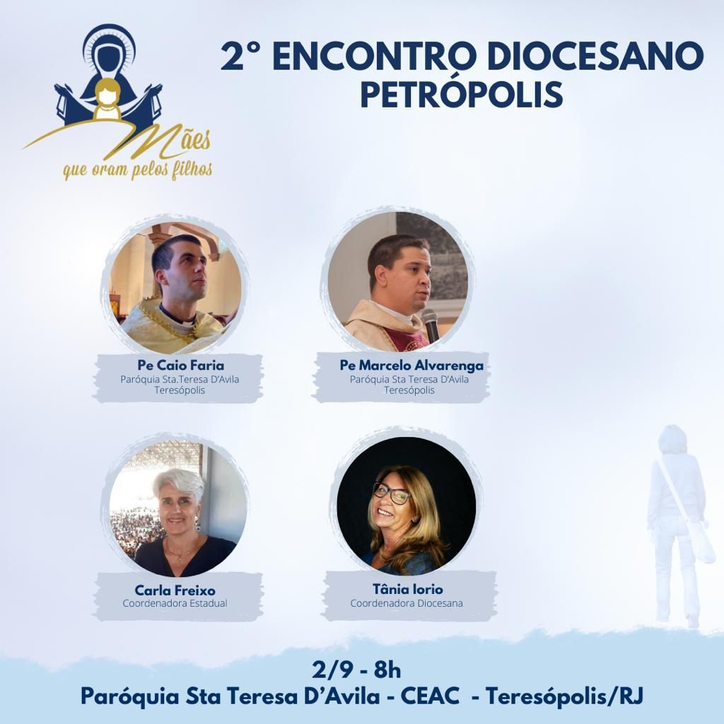 No dia 2 de setembro, acontece no CEAC, na Paróquia Santa Teresa D’Ávila, em Teresópolis, o segundo encontro diocesano do movimento Mães que Oram Pelos Seus Filhos.