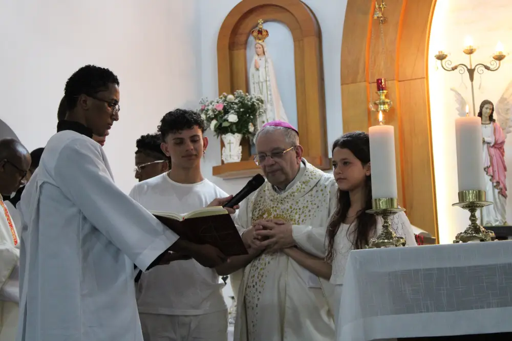 Um dos momentos mais marcantes da noite foi a celebração do Batismo de dois jovens da comunidade do Independência, que assumiram publicamente a fé católica e manifestaram o desejo de serem incorporados à Igreja. Após a bênção da água e a renovação das promessas batismais por toda a assembleia, Dom Joel administrou o Sacramento do Batismo. Ao final do rito, apresentou os jovens à comunidade, pedindo que fossem acolhidos com grande alegria como novos membros da Igreja.