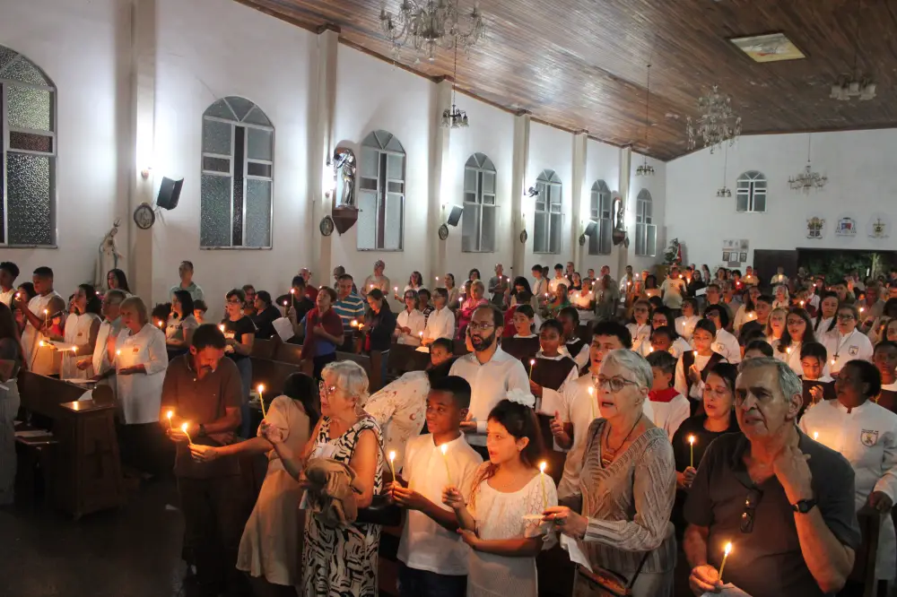 A Vigília Pascal na Paróquia São Jorge, marcada pela luz do Círio, pela água do Batismo e pela escuta da Palavra, renovou na comunidade a certeza de que Cristo vive e caminha com o seu povo, fortalecendo a missão de anunciar, com alegria, que o Ressuscitado está no meio de nós.