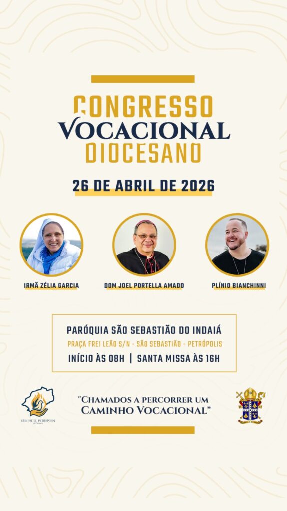 A Paróquia São Sebastião, no bairro Indaiá, em Petrópolis, será palco, no dia 26 de abril, de um importante momento de discernimento e animação vocacional: o Congresso Vocacional Diocesano, que neste ano traz o tema “Chamados a percorrer um Caminho Vocacional”.