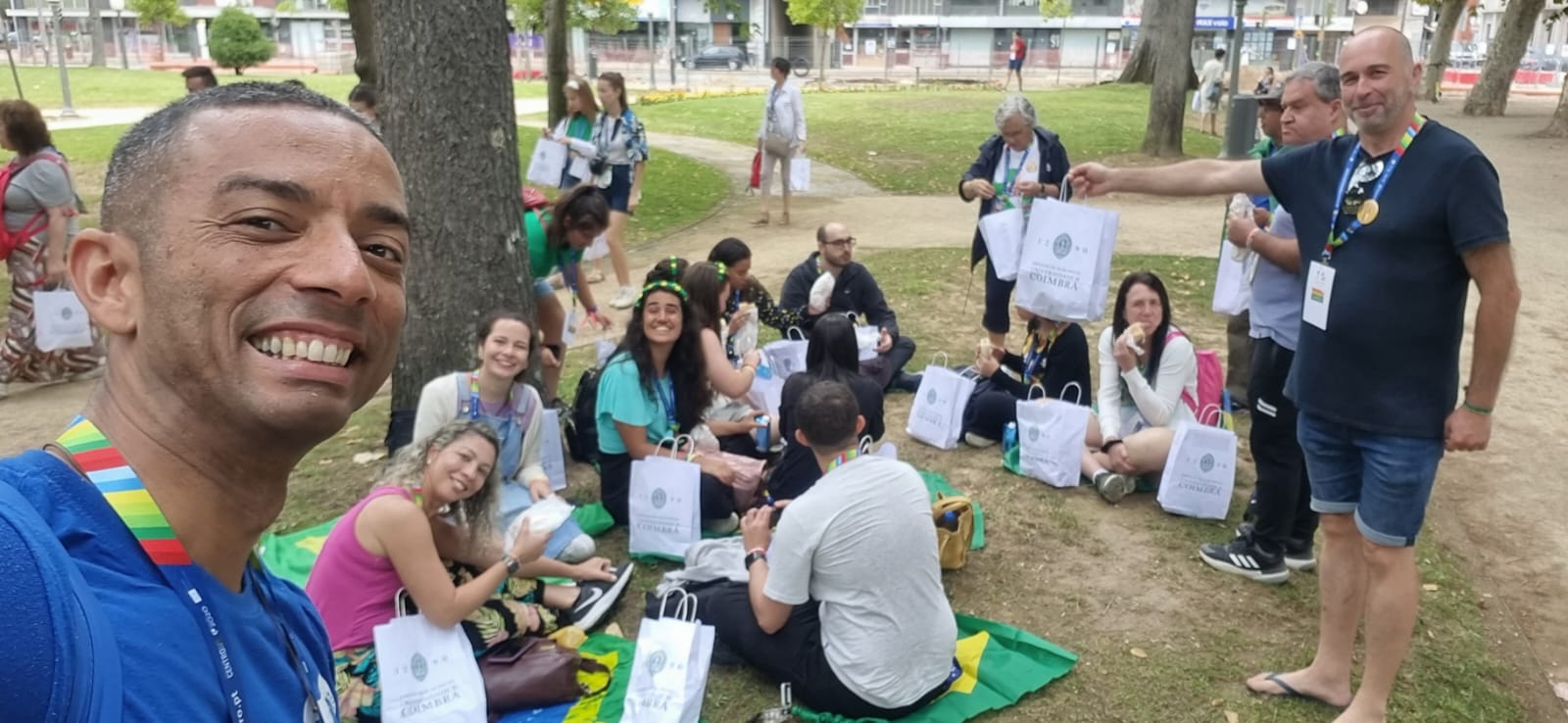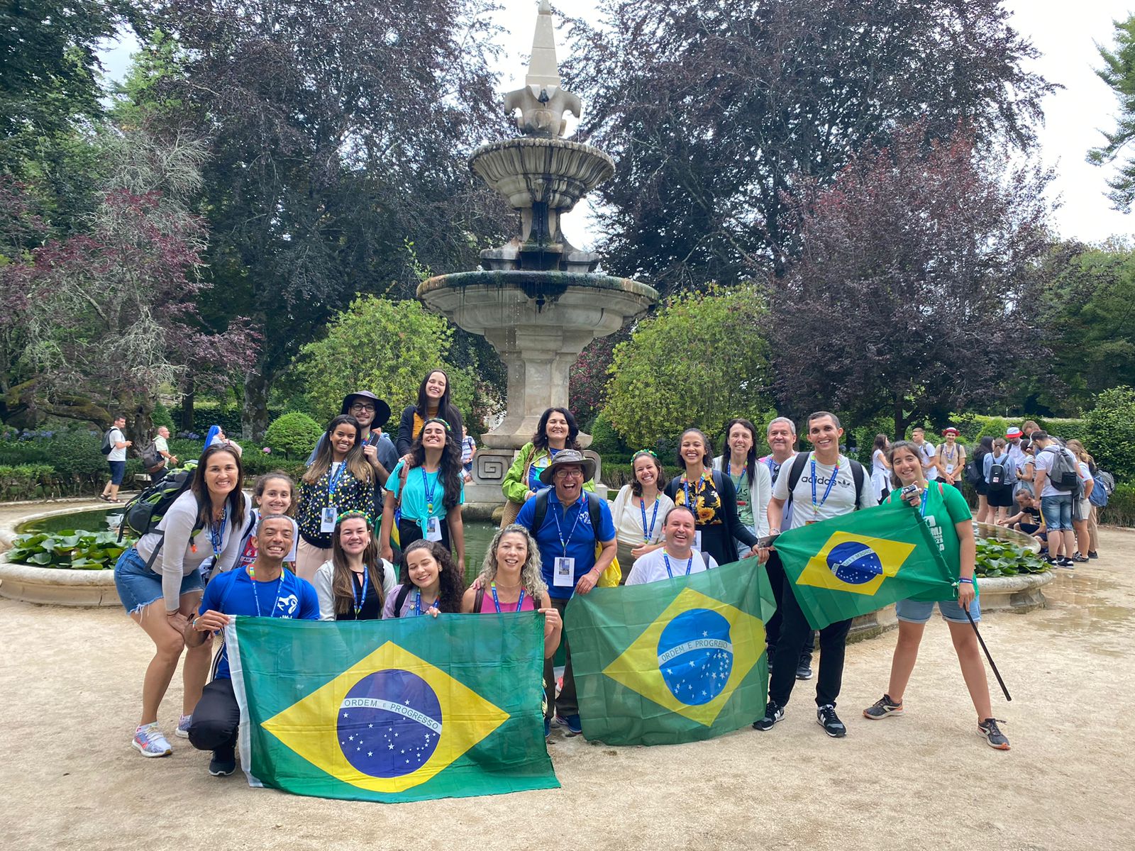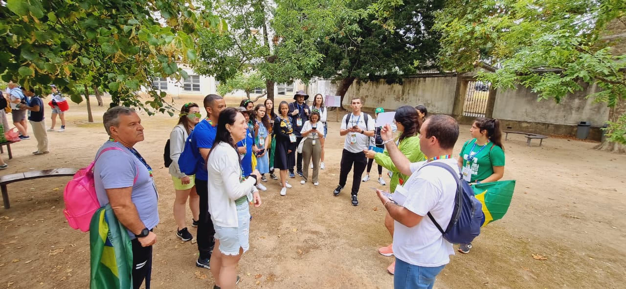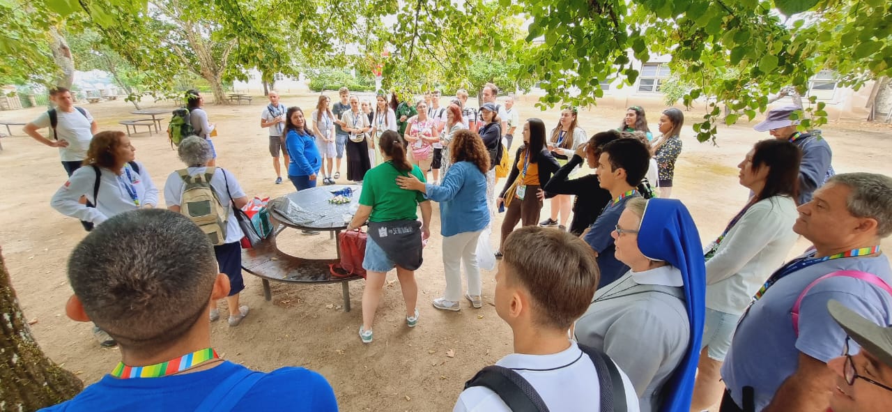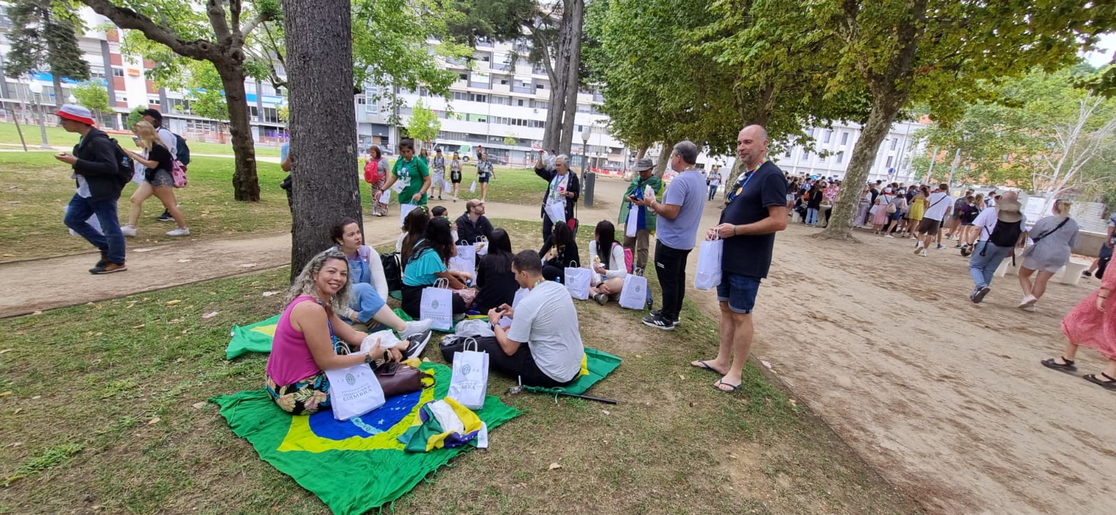 Na manhã de hoje, os peregrinos da Diocese de Petrópolis e de outros países que estão em Coimbra, participaram de uma vivência no Jardim Botânico, no município de Coimbra. “Participamos de dinâmicas de grupo e interação com diversos peregrinos, entre eles os poloneses e salvadorenhos que estão conosco na mesma paróquia, encontramos peregrinos suecos e alemães”, contou Fabiane.