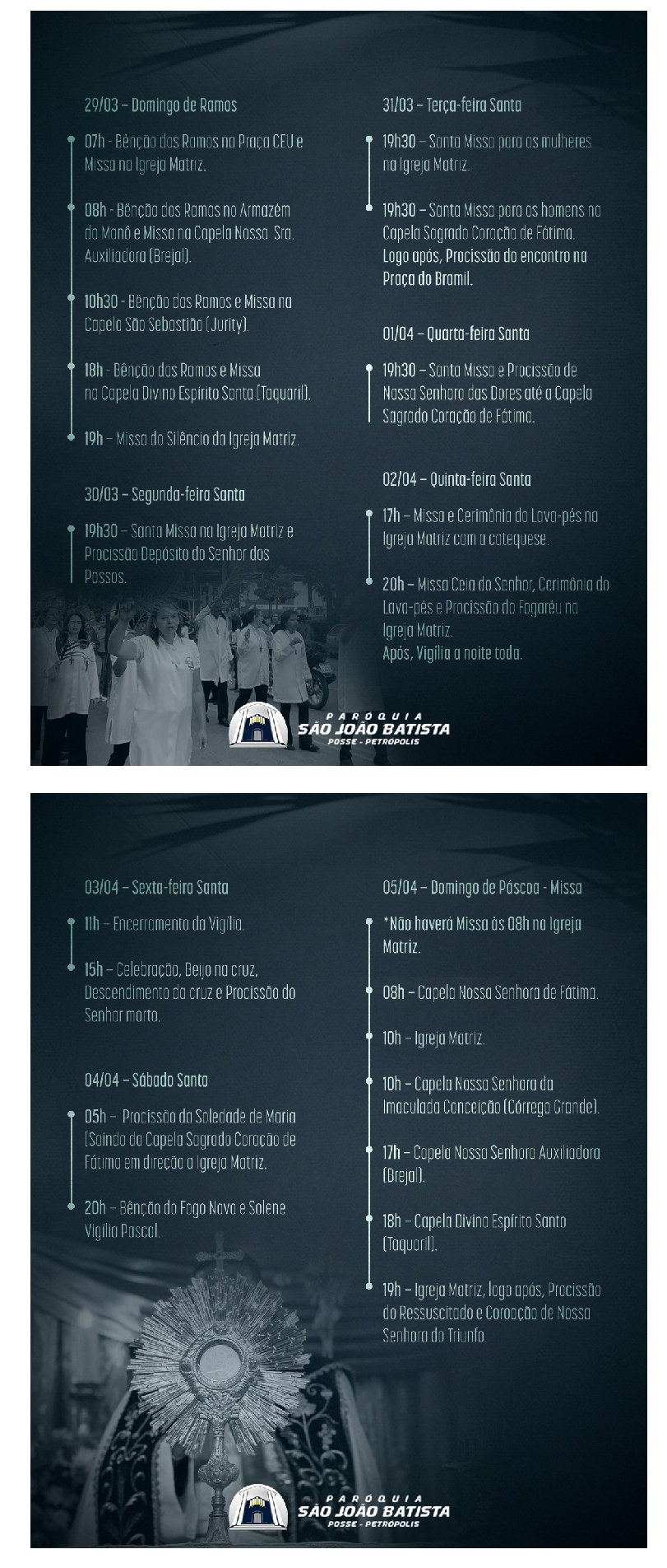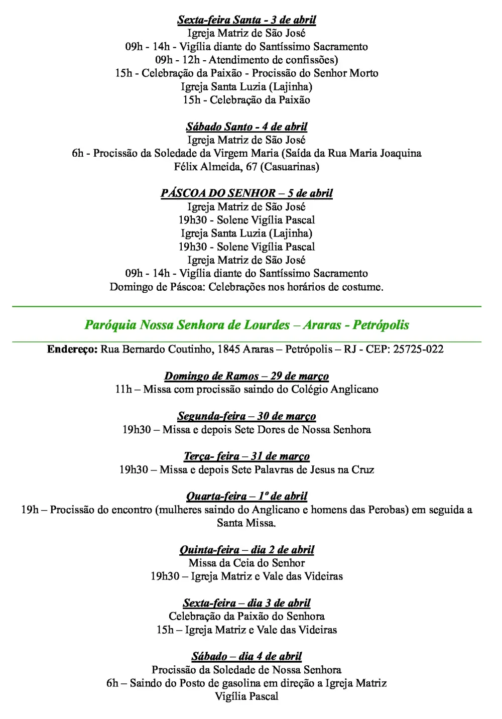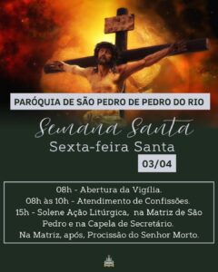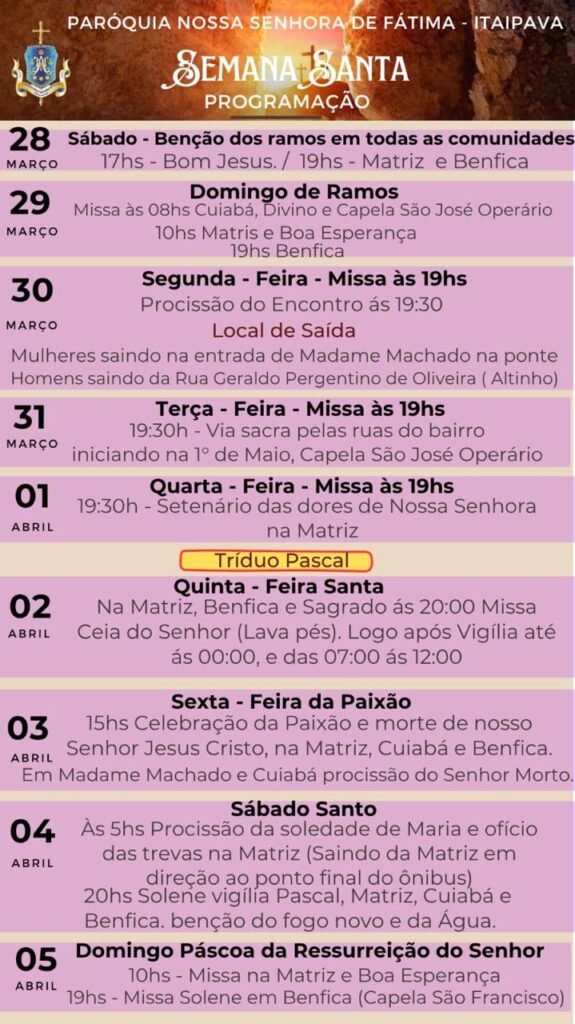 Programação Semana Santa 2026 – Decanato Nossa Senhora do Amor Divino – Petrópolis (Correas, Nogueira, Araras, Itaipava, Pedro do Rio e Posse) – São José do Vale do Rio Preto, Areal, Bemposta e Inconfidência