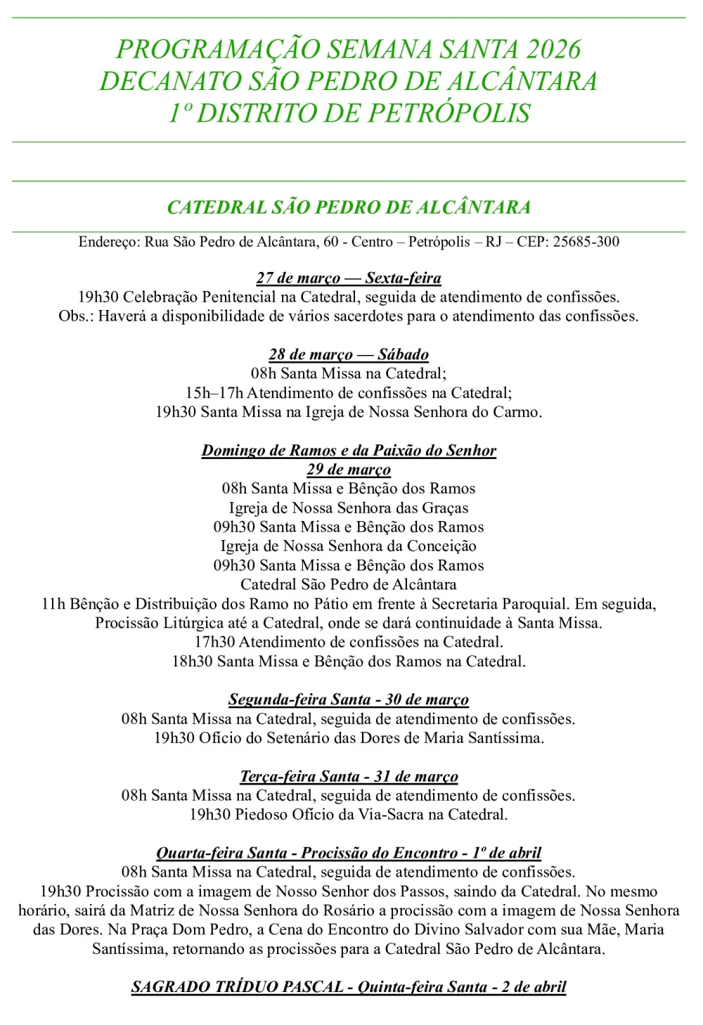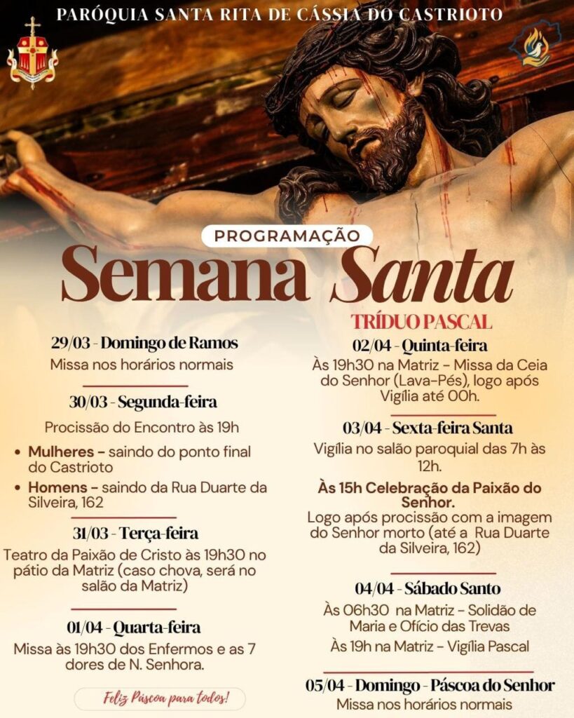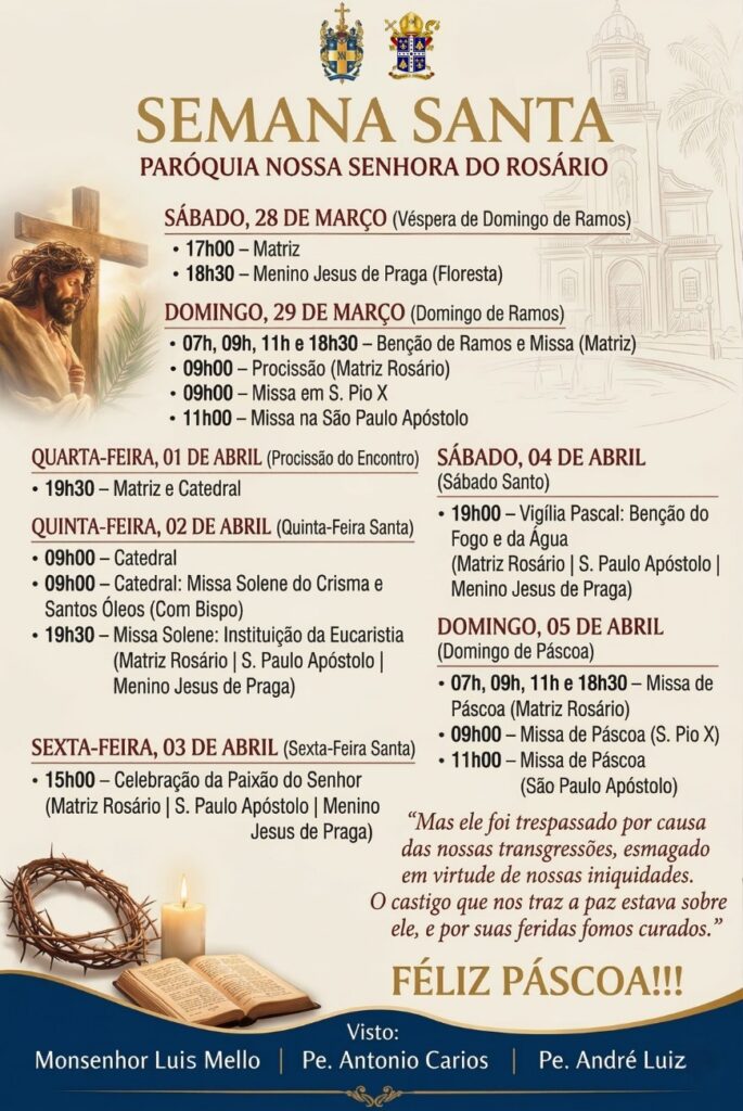 Programação Semana Santa 2026 – Decanato São Pedro de Alcântara – 1º Distrito de Petrópolis