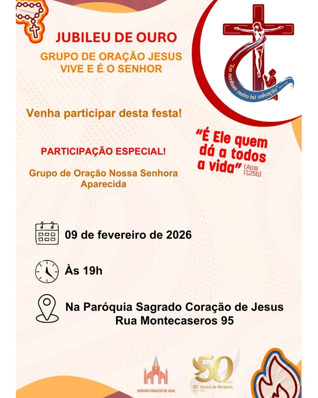 A Renovação Carismática Católica (RCC) da Diocese de Petrópolis está em festa! Neste ano de 2026, o movimento celebra 50 anos de evangelização, oração e serviço à Igreja, uma história que começou com o Grupo de Oração Jesus Vive e é o Senhor, da Igreja do Sagrado Coração de Jesus, no centro de Petrópolis. A celebração acontece em sintonia com os 80 anos da Diocese, tornando este jubileu ainda mais significativo para toda a comunidade diocesana.