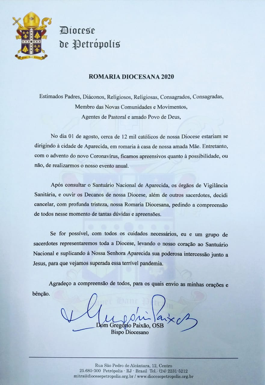 Romaria ao Santuário de Aparecida foi cancelada por causa do Covid-19