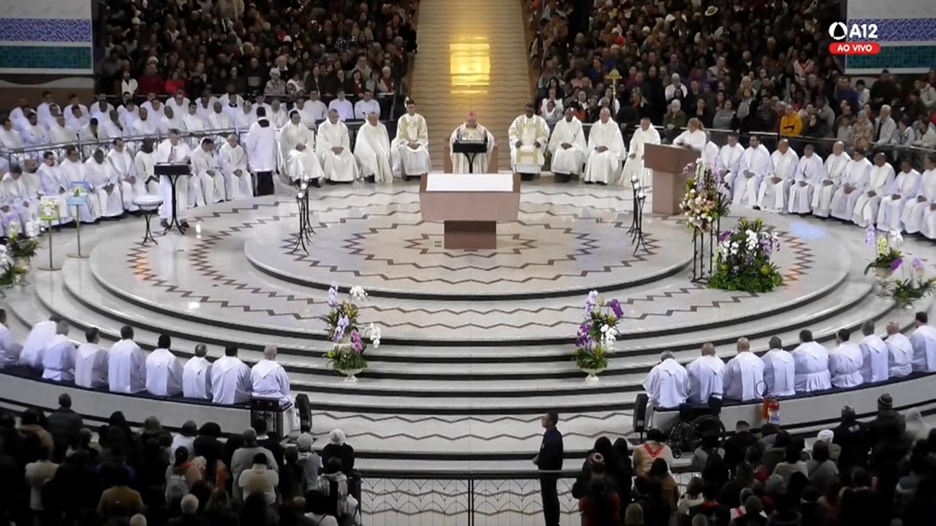 Com essas palavras, Dom Joel encerrou a missa, deixando uma mensagem de otimismo e fé aos presentes, em um ambiente de profunda espiritualidade e reflexão no Santuário Nacional de Aparecida.