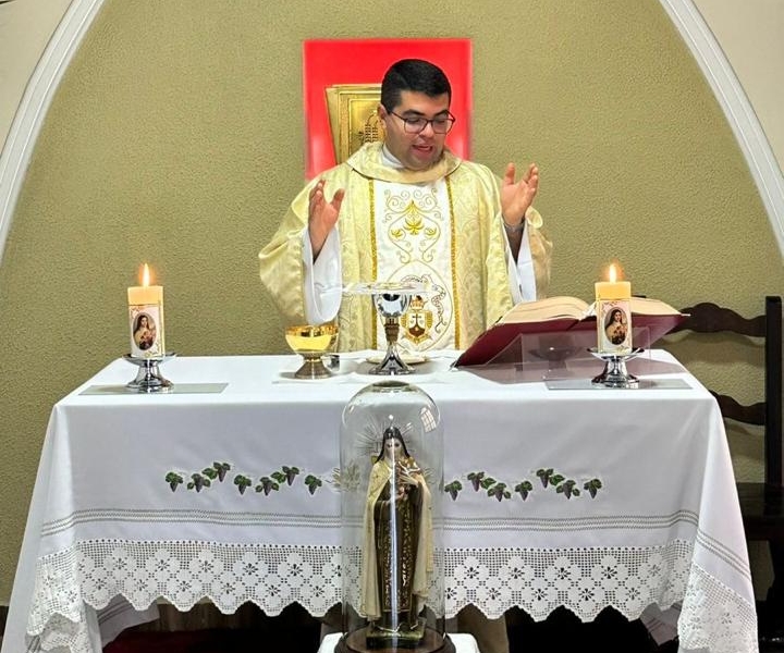 Durante a homilia, Padre Flávio destacou a importância do legado de Santa Terezinha, ressaltando como sua simplicidade e amor incondicional são modelos para a missão das irmãs.