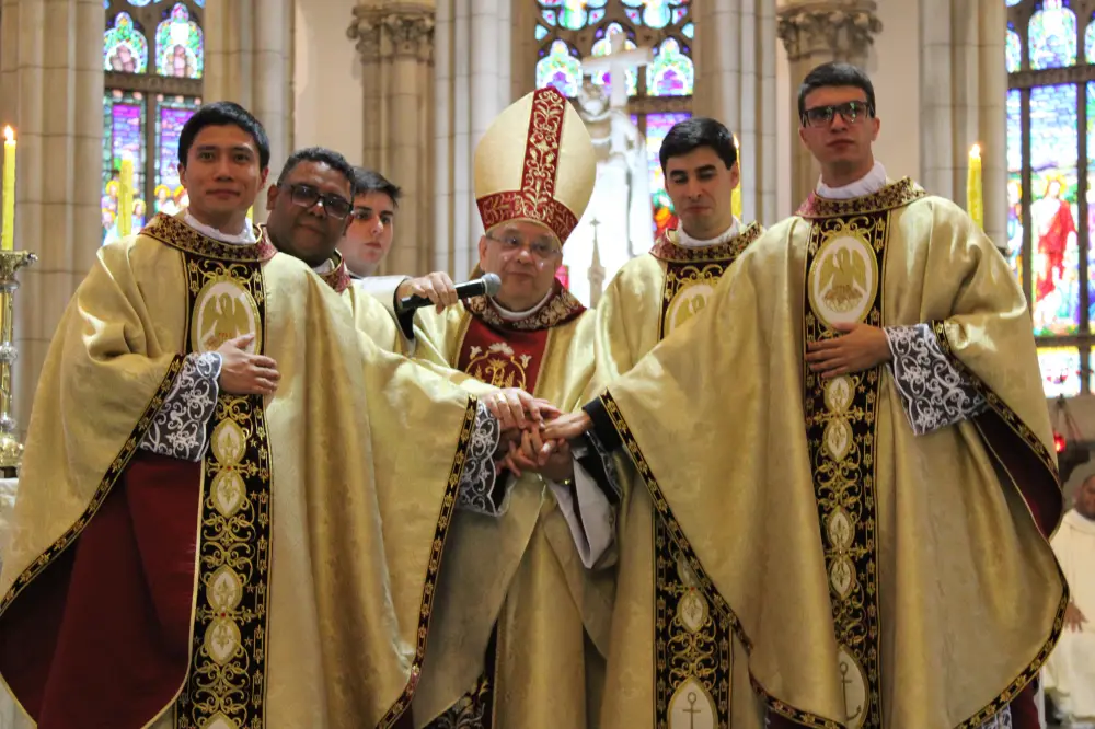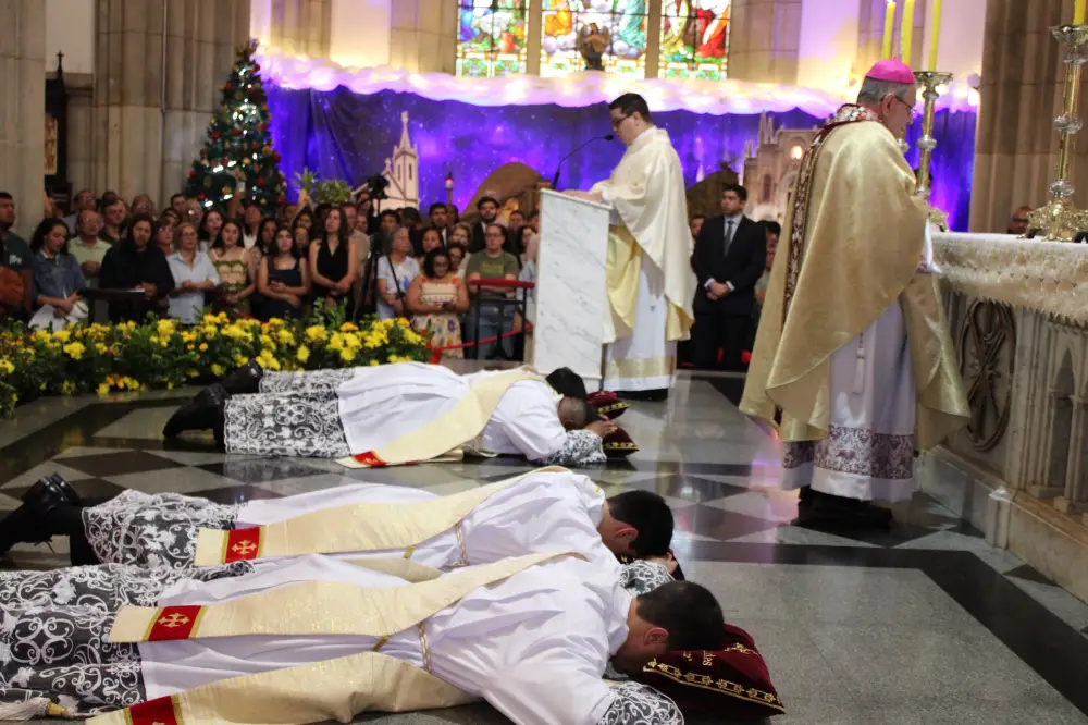 Na manhã deste sábado, 6 de dezembro, a Catedral São Pedro de Alcântara, em Petrópolis, recebeu a celebração de ordenação sacerdotal, marcada por emoção, fé e esperança. Em solene missa presidida por Dom Joel Portella Amado, bispo diocesano, foram ordenados sacerdotes os diáconos Anderson Sales dos Santos Pereira, Cankin Ma Lam, Frederico Fernandes de Oliveira Ferreira e Yuri Araújo de Oliveira.